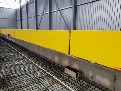 Elektrohydraulisch höhenverstellbares Geländer mit Schüttrampe in einer Deponie. Die Segmente lassen sich einzeln in 10 m Stücken absenken oder ausfahren. |
