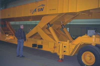 Mobiles Fahrzeug zum Transport von Rumpfteilen in der Flugzeugindustrie. |